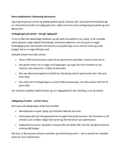 Kort status fra Bramming Fjernvarme