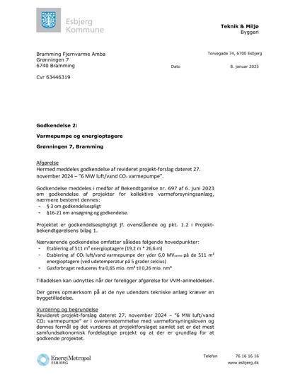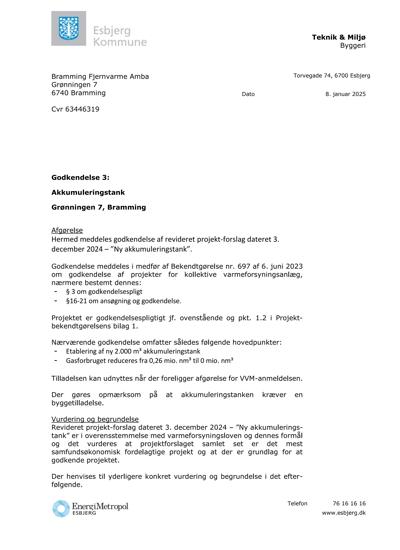 Herunder findes de tre godkendelser for projektet. Godkendelserne er udstedet af Esbjerg Kommune.